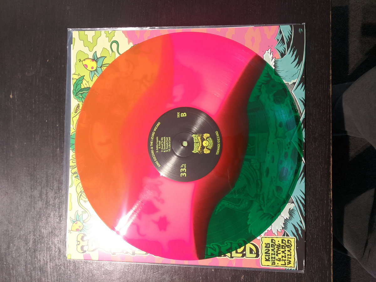 Psychedelic Dreamscape edition of Teenage Gizzard, pressed onto neon pink/orange/neon green triple stripe effect vinyl. Limited to 250 copies worldwide, this pressing features exclusive alternative artwork from Jase Harper