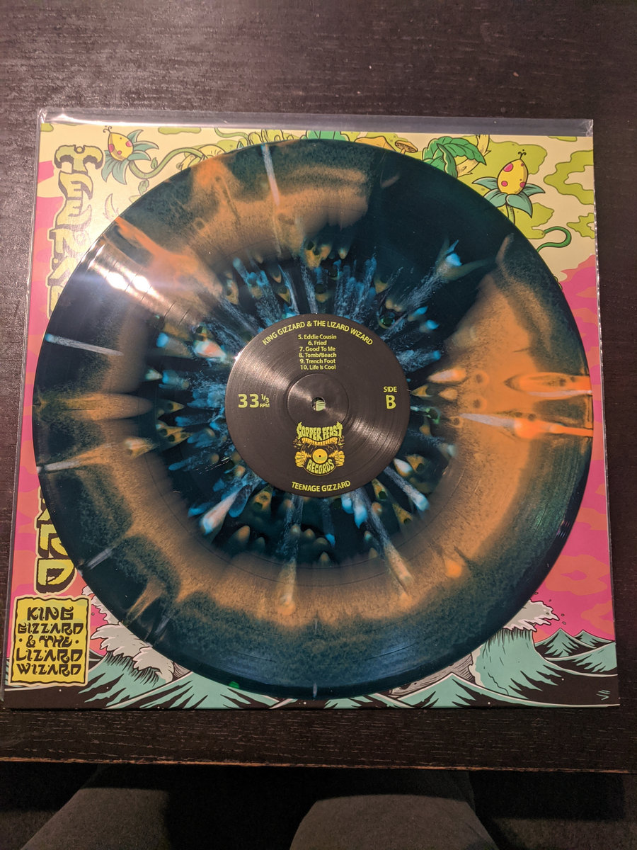 Organic Tomb edition of Teenage Gizzard, pressed onto blue and orange swirl vinyl with cream and green splatters. Limited to 250 copies worldwide, this pressing features exclusive alternative artwork from Jase Harper